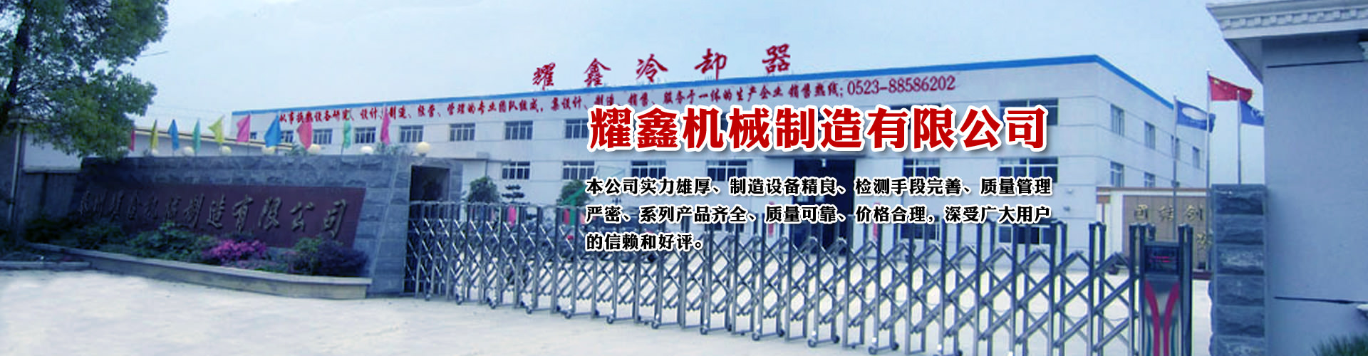 免費(fèi)咨詢方案 +泰州耀鑫機(jī)械制造有限公司座落于風(fēng)景如畫的江蘇魚米之鄉(xiāng)--全國(guó)文明城鎮(zhèn)婁莊鎮(zhèn),是一家專業(yè)生產(chǎn)風(fēng)冷卻器、列管式冷卻器、板式冷卻器的企業(yè)。本公司實(shí)力雄厚、制造設(shè)備精良、檢測(cè)手段完善、質(zhì)量管理嚴(yán)密、系列產(chǎn)品齊全、質(zhì)量可靠、價(jià)格合理,深受廣大用戶的信賴和好評(píng)。
